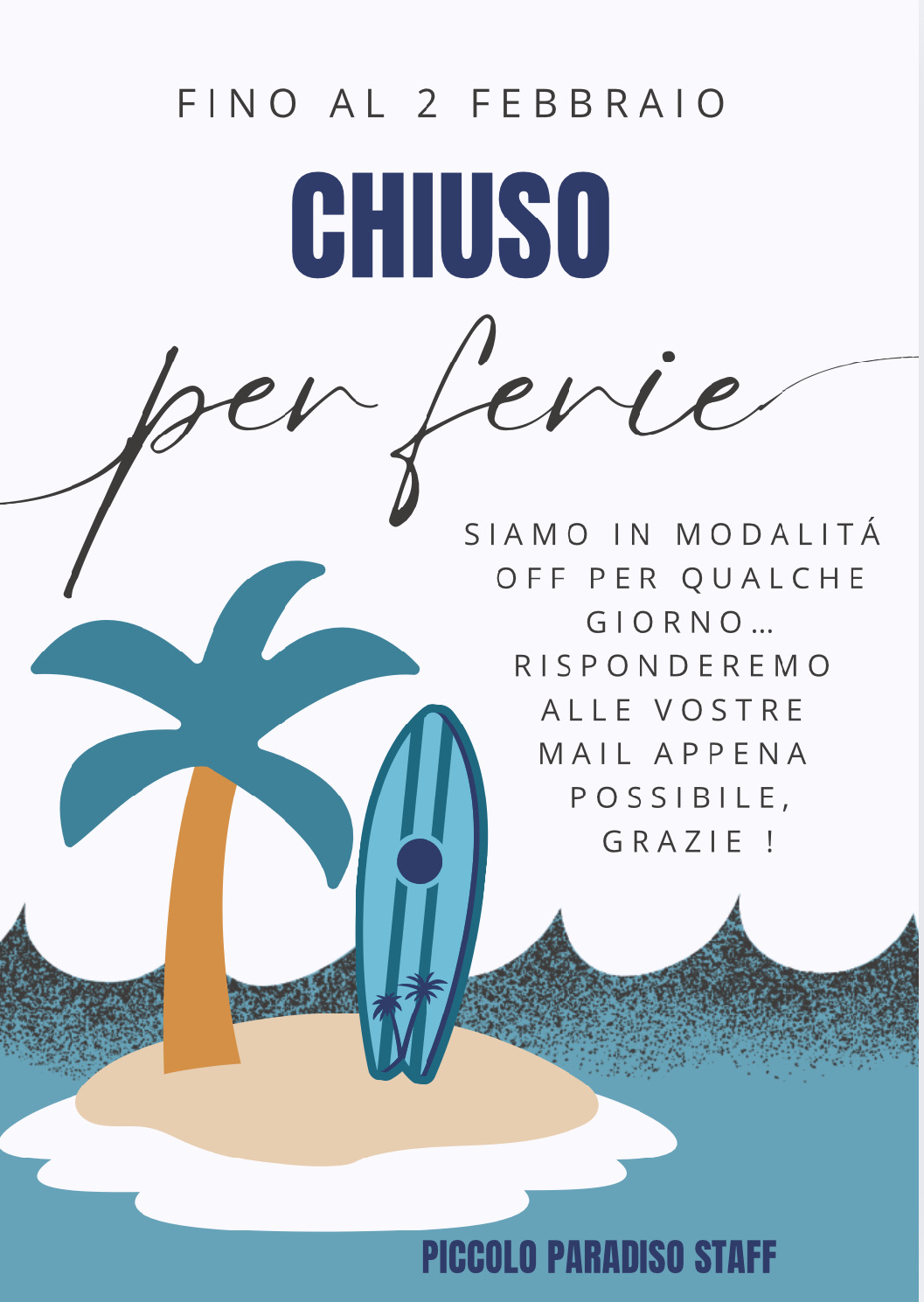 we will be in OFF mode for a few days to recharge our batteries in view of the upcoming new season, and we would like to inform you that we will not be reachable during this time.