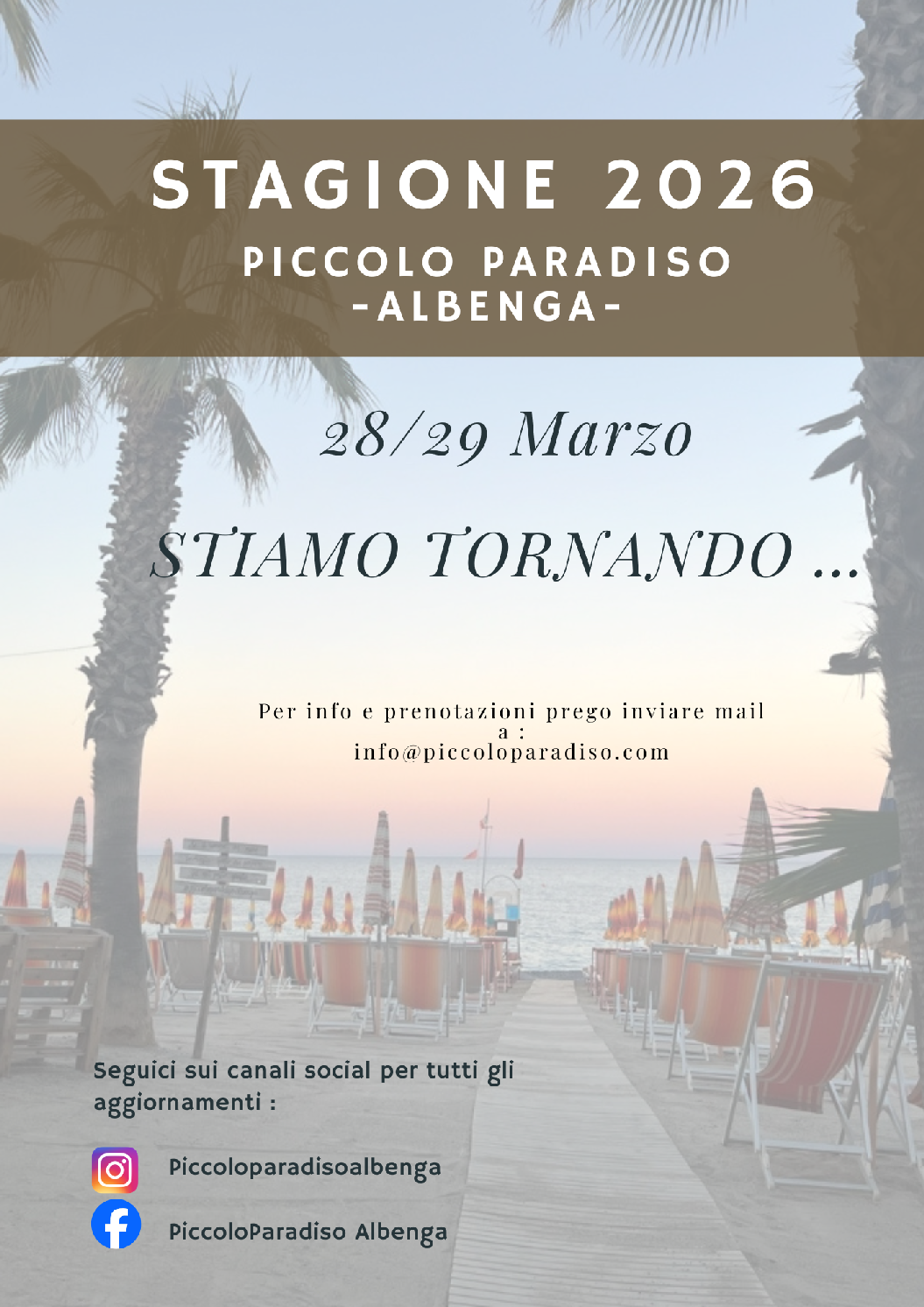🌿 Sta per iniziare una nuova stagione al Piccolo Paradiso di Albenga!
